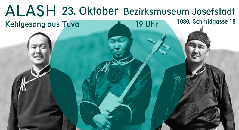Das Ensemble Alash gibt in kleinem, familiären Rahmen einen Einblick in Kultur und Traditionen der Tuwa. Der Vortrag wird ergänzt durch musikalische Beispiele und leichte Übungen zum Mitmachen.