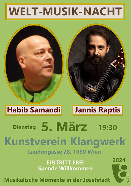 11. April 2024, 19:30 Uhr – Kunstverein Klangwerk, Laudongasse 28, 1080 Wien