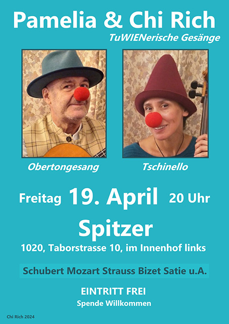 19. April 2024, 20:00 Uhr – Spitzer, Taborstrasse 10 - im Innenhof links, 1020 Wien